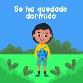 EmpezarEs domingo y Matías sale de casa pateando su pelota azul. Cuando llega al parque ve a un niño y un señor jugando fútbol.